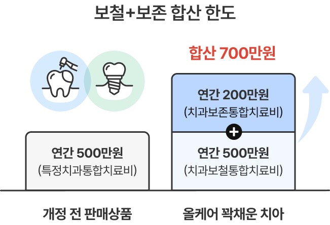 올케어 꽉채운 치아 : 연간 200만원(치과보존통합치료비) + 연간 500만원(치과보존통합치료비) 합산 700만원
